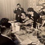 Het diner vond plaats op de Wilhelminasingel 93 bij pa Hong en ma Ans. Frans Lahaye, een bekend Maastrichts fotograaf en vriend, maakte de foto’s. Bijzonder was dat zelfs oom Walter en tante Els uit Nieuw Zeeland aanwezig waren. Kortom alle kinderen met hun partners waren er. De kinderen Tan mochten tussen hun peetvader/peetmoeder en partner zitten. Winfried mocht erbij zijn als oudste nieuwe generatie vd Muijsenbergh. Op de foto’s zijn een trotse pa Hong en ma Ans te zien met hun filmende zoon Bing.