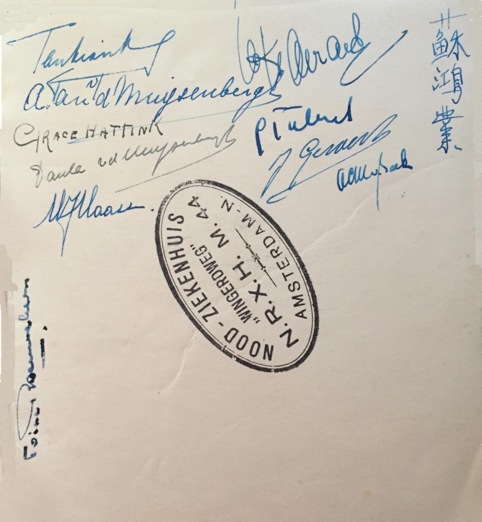 Er is een indexkaart van Dr. K.H.Tan die lid was van het Roode Kruis Hulpkorps kort na de oorlog. Mevr Tanian Hong-v.d.Muijsenbergh (de K is vergeten in Tanian, nog afgezien van het feit dat Kian Hong voornamen zijn en Ans dus mevrouw Tan-v.d.Muijsenbergh heette) staat wel op de voordrachtlijst maar van haar is geen indexkaart aangemaakt, waardoor het onduidelijk is of de voordracht tot toekenning heeft geleid’.