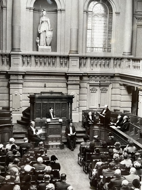 Onder de toehoorder op de tweede rij rechts ma Ans.