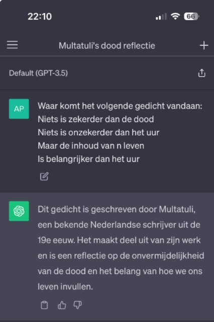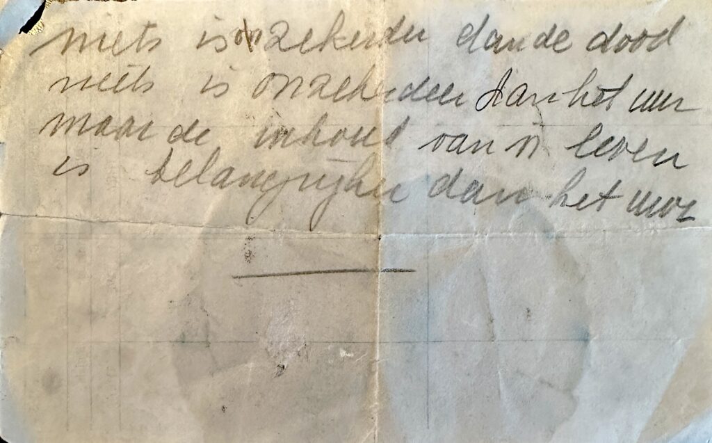 Blijft natuurlijk de vraag hoe ma Ans – zo en passant – deze gedachten is tegen gekomen. Waarschijnlijk komt de tekst uit een van zeven bundels die Mulatatuli (Eduard Douwes Dekker) heeft geschreven. De dood kwam veel voor in zijn werk.